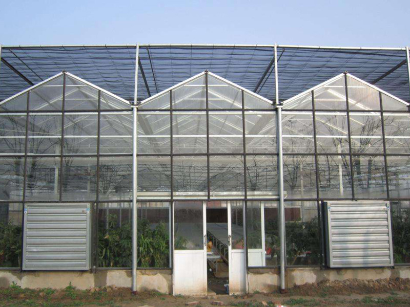 文絡(luò)溫室的骨架采用鋼架和鋁合金構(gòu)成,透明覆蓋材料為4mm厚平板玻璃。溫室屋頂形狀和類型主要有多脊連棟型和單脊連棟型兩種。