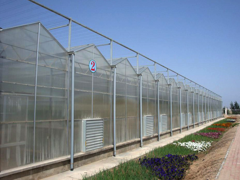文絡溫室的骨架采用鋼架和鋁合金構成,透明覆蓋材料為4mm厚平板玻璃。溫室屋頂形狀和類型主要有多脊連棟型和單脊連棟型兩種。